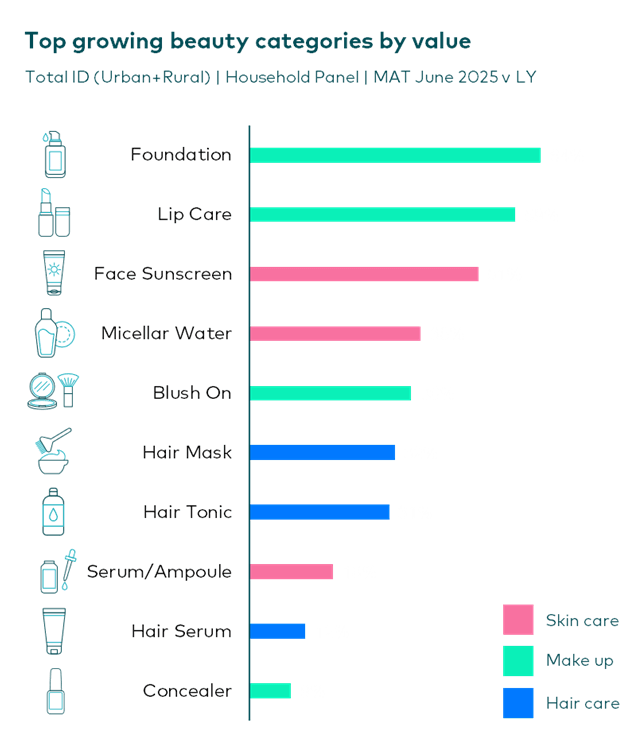This is reflected in the growth of categories such as foundation, which is having the strongest breakthrough, reflecting an upscale shopping behaviour. Foundation is followed by serum, concealer and blush on, as beauty shoppers now seek a flawless base for their beauty routine.