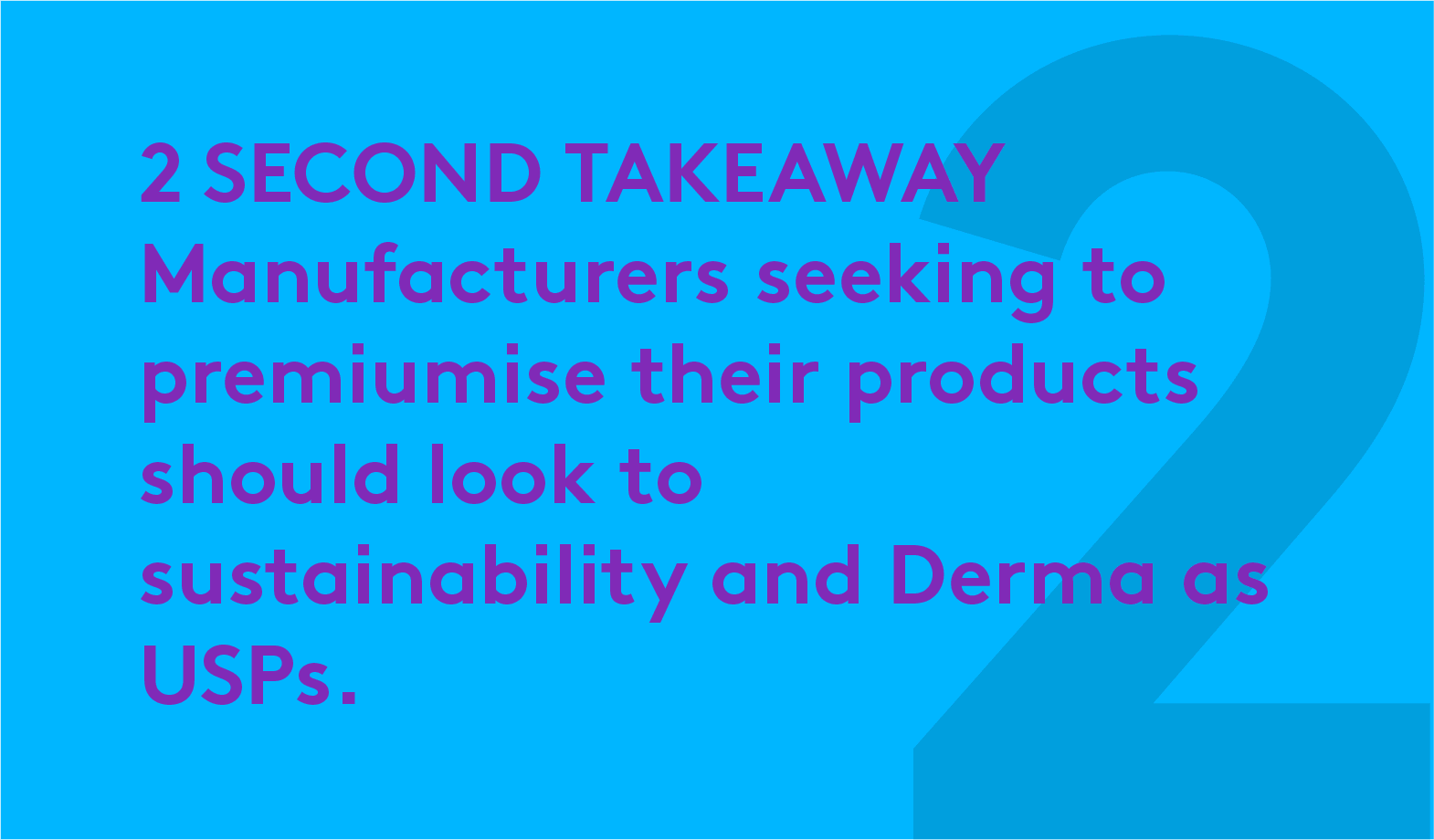 As a result, the Derma sector has seen value growth over the same time period. Natural and vegan products continue to grow in popularity as the world becomes more conscious of the ingredients in, and sustainability of, what they’re buying.