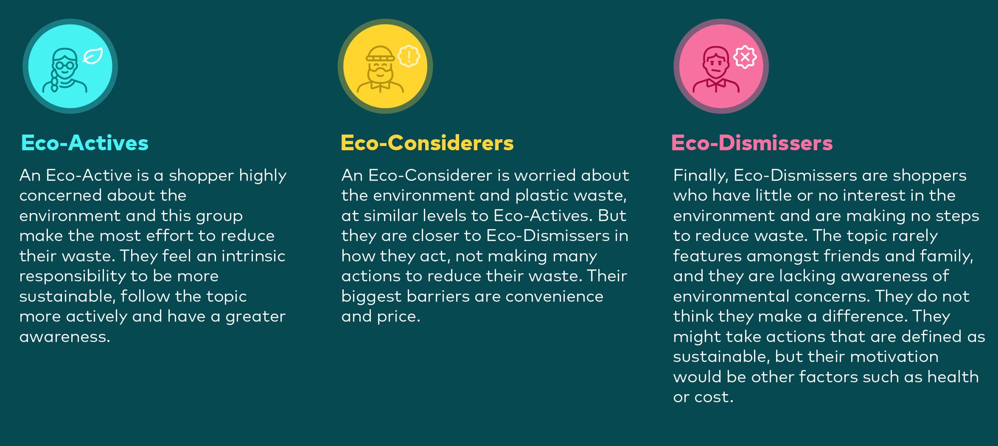 Based on these behaviours, for the last seven years, we’ve divided consumers into three groups, Eco-Actives, Eco-Considerers and Eco-Dismissers.